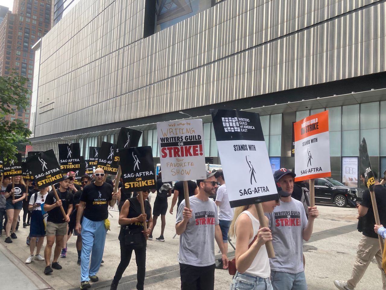 In Los Angeles, there was large-scale picketing outside the major studios. In New York, strikers marched outside the offices of companies such as Netflix, NBCUniversal, Paramount, Amazon and Warner Bros. Discovery.