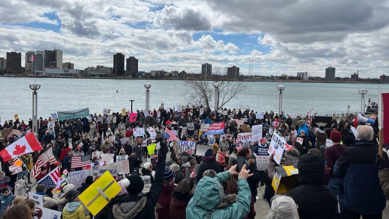 Joint US-Canada protest against Trump along Detroit River