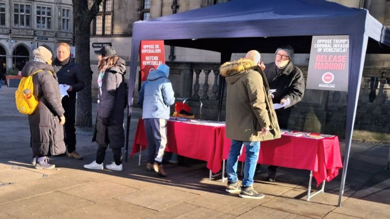 On Saturday, a Socialist Equality Party campaign stall outside the Town Hall in Sheffield, South Yorkshire attracted workers and youth for discussions and to take copies of the leaflets: “Oppose Trump’s criminal invasion of Venezuela! Release Maduro!”, and “Venezuela and Ukraine highlight bankruptcy of Britain’s anti-war movement”.
